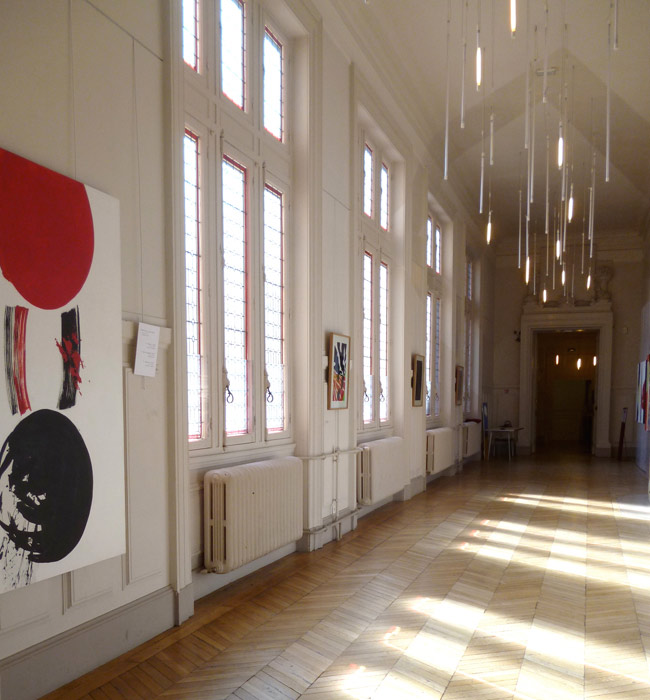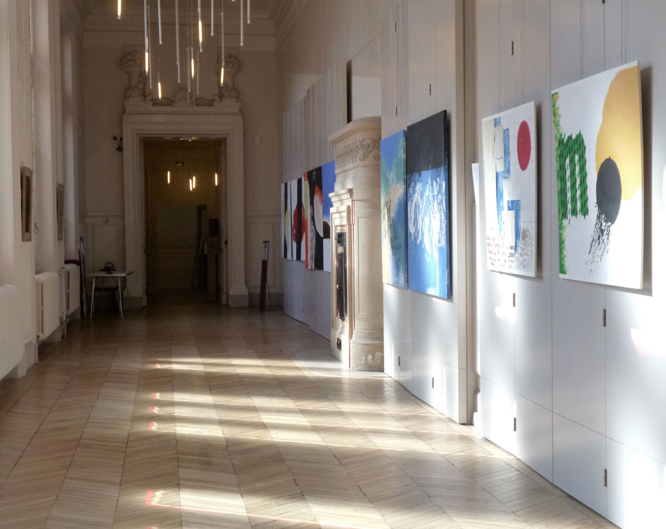Pour les Galeries Athéna et Antichambre de la Mairie du XIIIe, j'ai choisis de présenter outre la série de neuf peintures « WTC – 9/11 » , 2012-2014, grand format (195 x 130 cm) acrylique sur toile, une série de neuf « Paysages et Nuages », 2014-2015, le mobile « Au-dessus des nuages », 2009, et des dessins noir et blancs, 2014-2015.
