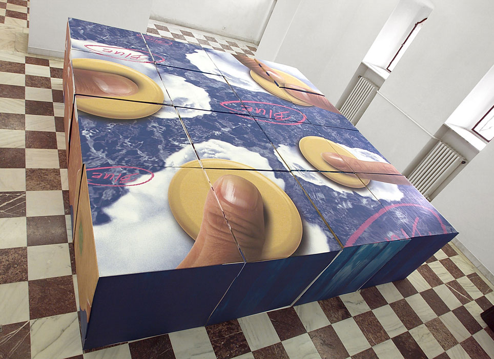 Ce projet comprend cinq objets tridimensionnels de grande taille, réalisée à partir de matériaux en usage dans la publicité et dans les médias ainsi qu’une vidéo 4’29’’ réalisée par Victor Velculescu.