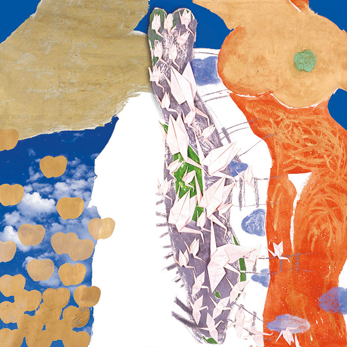 Les cinq objets emprunteront (jalonneront) le tracé visuel dans l’ordre suivant : Le sac en papier ; Rame (de papier) avec pommes ; Cubes ; L’arbre ; Le Cerf volant.