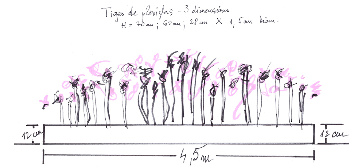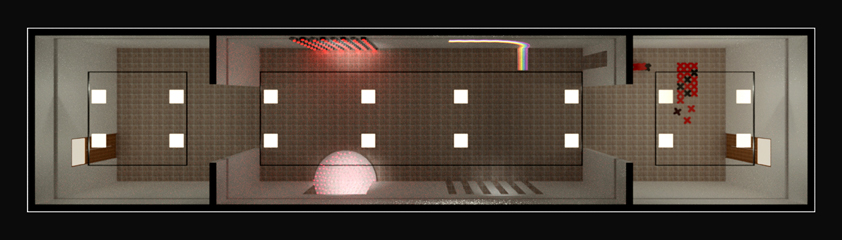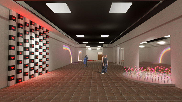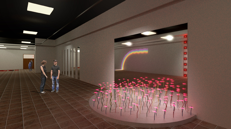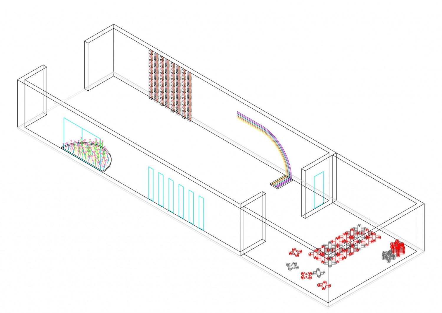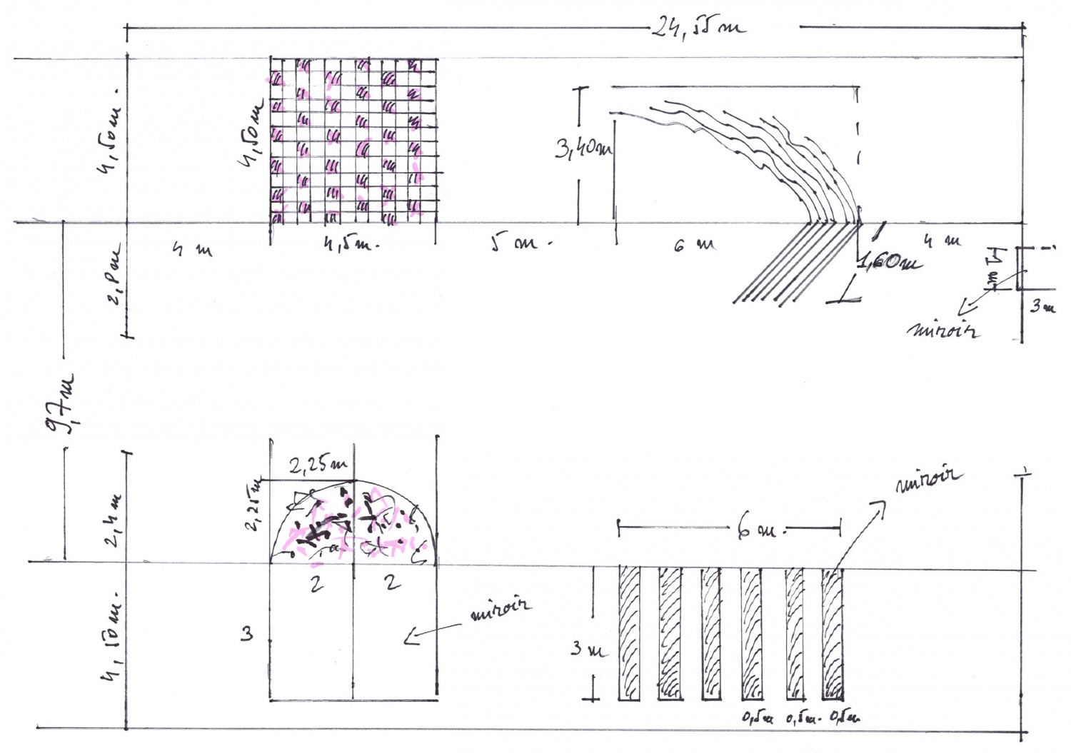 « Réflexions/Arc-en-ciel » est un projet qui propose une nouvelle manière de réaliser une exposition, un trajet qui rompe avec les codes et les visions traditionnels. Il présente une série de douze dessins noir et blanc, deux installations lumineuses réalisées en néon et matériaux réfléchissants, ainsi qu’un atelier de création pour des enfants en âge scolaire (de 6 à 14 ans). Que se passe-t-il lorsque le point de vue est radicalement modifié ? Les visiteurs sont invités à parcourir un trajet plus inattendu, de telle sorte qu’ils activent eux-mêmes un jeu infini de reflets. Traversant les salles et les vastes installations, ils deviennent partie prenante d’une chorégraphie de lumières, de reflets, de formes géométriques et d’ombres mouvantes. Les installations lumineuses et les modules disposés tout au long de ce trajet peuvent témoigner de mes propres recherches sur les mécanismes de la perception et la construction de l’espace d’exposition.