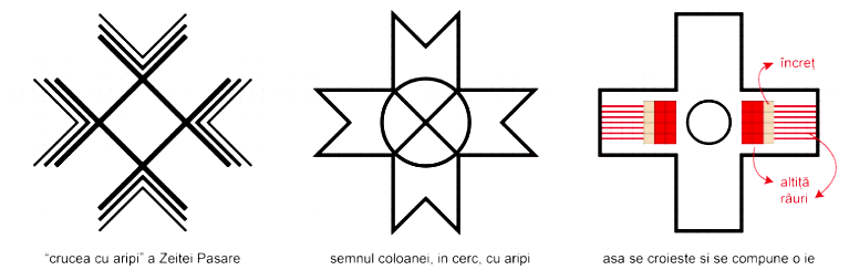 Les matériaux retenus sont ceux qui sont utilisés couramment dans la publicité et les médias, c’est-à-dire relevant de l’actualité, légers, faciles à manier, à travailler et assembler, présentant des qualités qui assurent la précision de l’exécution et le jeu de réflexion. Les couleurs se présentent par paires : Blanc/Rouge et Noir/Rouge. La première symbolise la pureté et l’imperfection, la lumière et l’obscurité, la seconde renvoient à la vie et à la mort. Ces couleurs sont celles que l’on retrouve le plus souvent dans la couture traditionnelle roumaine.